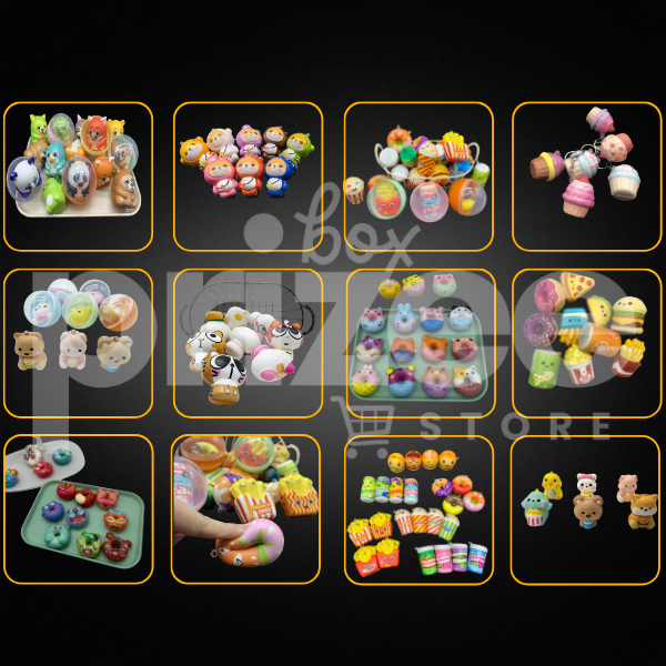 Csomagajánlatunk a következő: (50 mm-es kapszulák, melyek kiváló minőségű vegyes squishy játékokat tartalmaznak. Megtalálható köztük cicás, állatkás, fast-food stb. Ezek gyűjthetőek, hiszen minden típusnak legalább 8 fajtája van.)